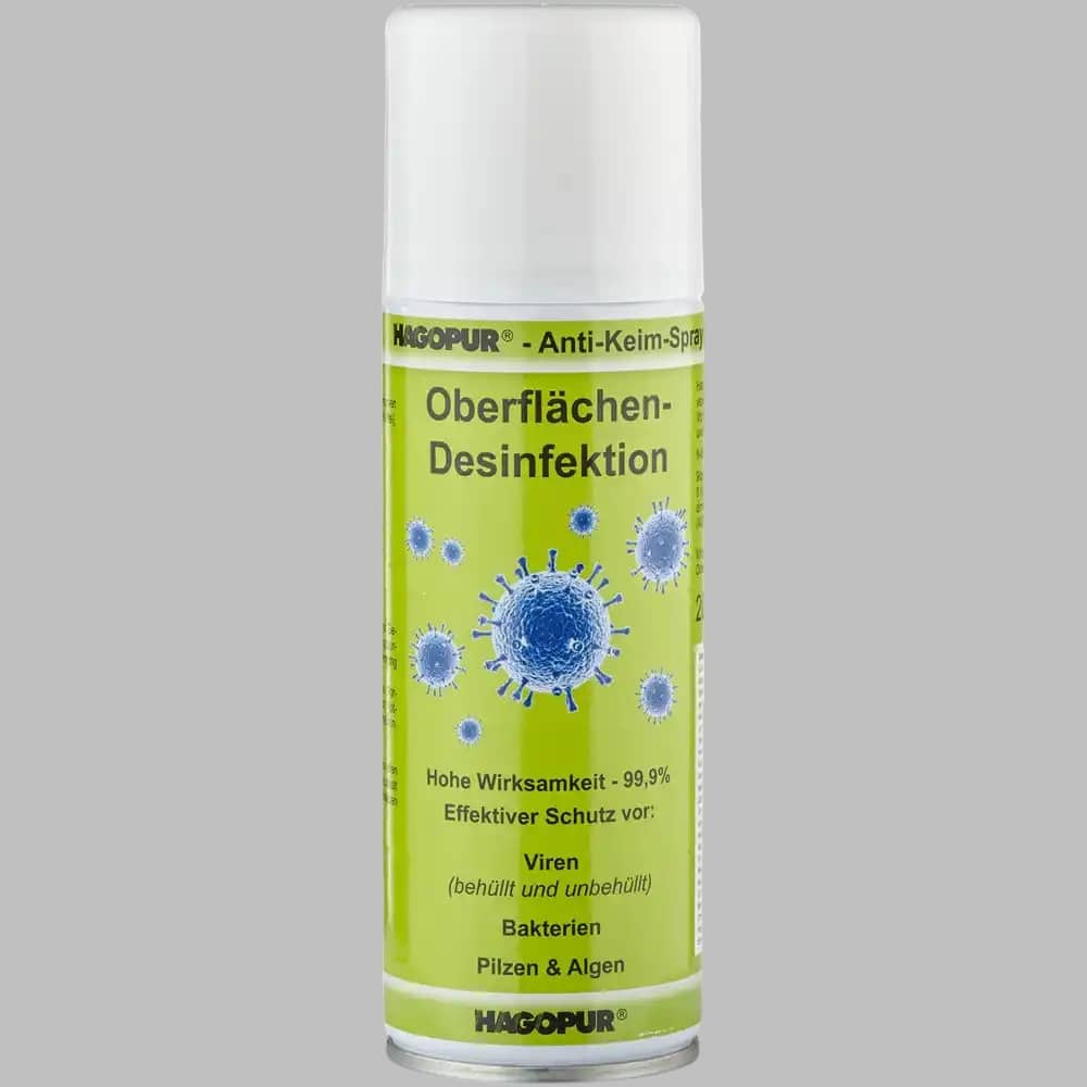 Anwendungshinweise: Hagopur-Anti-Keim-Spray gleichmäßig aus einer Entfernung von 15 – 20 cm auf alle zu desinfizierenden Flächen und Gegenstände aufsprühen. Den gebildeten Wirkstofffilm an der Luft trocknen lassen; in der Regel ist ein Nachwischen nicht erforderlich. Augen- und Hautkontakt vermeiden, sowie das Einatmen von Sprühnebel.