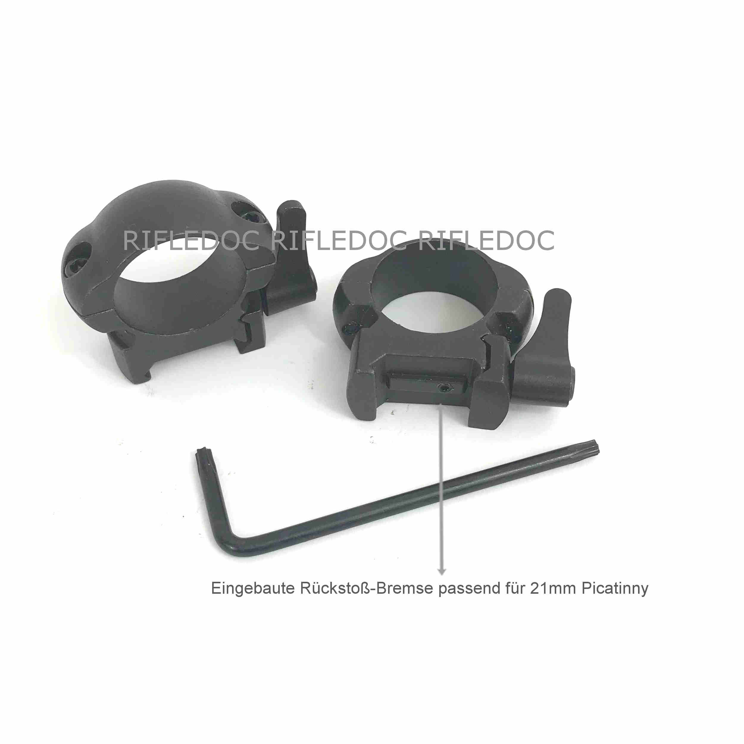 • Set besteht aus zwei Montagetürmen, Montageschlüssel und original Rifle Doc Schraubensicherung